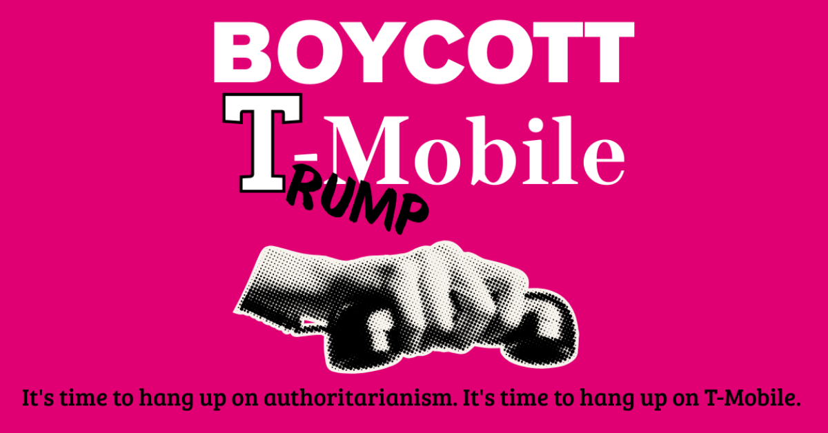 - Sign this pledge which boycott organizers will use as leverage in applying pressure to T-Mobile.