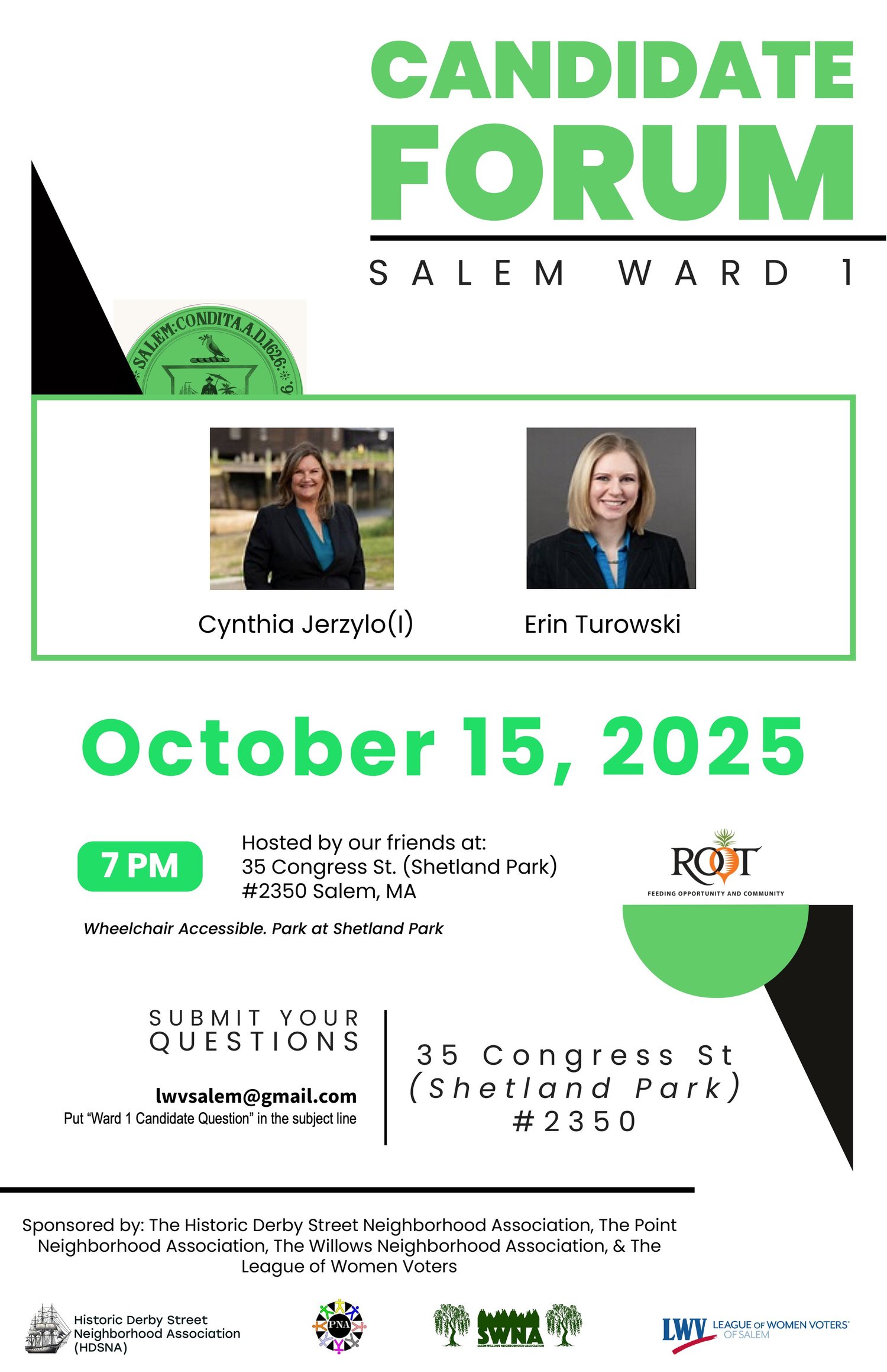 - Witch City Action Policy Questionnaires not returned by either candidate.